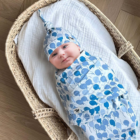 Sold outOrganic Baby Beanie - Blue Balloons